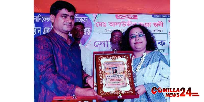 ভারতের কোলকাতা ছায়ানট’র সভাপতি, নজরুল গবেষক ও সঙ্গীত শিল্পী সোমঋতা মল্লিককে জাতীয় কবি কাজী নজরুল ইসলামের স্মৃতিধন্য কুমিল্লার মুরাদনগর উপজেলার বাঙ্গরা বাজার থানাধীন দৌলতপুর নার্গিস নজরুল বিদ্যা নিকেতন ও কবি নজরুল নিকেতনের পক্ষ থেকে সংবর্ধণা দেওয়া হয়েছে।
