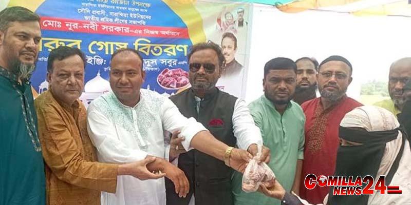 পবিত্র মাহে রমজান উপলক্ষে নারান্দিয়া ইউনিয়নের সাধারণ মানুষের মাঝে সৌদি আরব প্রবাসি নারান্দিয়া ইউনিয়নের জাতীয় শ্রমিকলীগের সভাপতি মোঃ নূর নবী সরকারের এর নিজস্ব অর্থায়নে গরুর গোস্ত বিতরণ করা হয়েছে। ১২ রমজান শনিবার সকাল ১১ টায় নারান্দিয়া ইউনিয়নের কাচারি বাজারস্থ চকের বাড়িতে প্রায় ৪০০ জন মানুষের মাঝে গোস্ত বিতরণ করা হয়। প্রত্যককে ৬০০ গ্রাম করে গরুর গোশত তুলে দেয়া হয়।