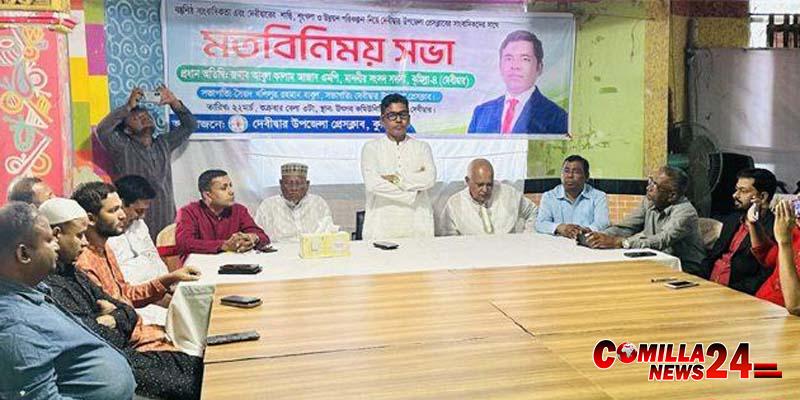কুমিল্লার দেবিদ্বার উপজেলা প্রেসক্লাবের সদস্যদের সাথে মতবিনিময় করেছেন কুমিল্লা-৪ (দেবিদ্বার) আসনের সংসদ সদস্য মো. আবুল কালাম আজাদ। শুক্রবার বিকেলে উৎসব কমিউনিটি সেন্টারে এই মতবিনিময় সভা হয়। প্রেসক্লাবের সভাপতি সৈয়দ খলিলুর রহমান বাবুলের সভাপতিত্বে এবং সাধারণ সম্পাদক সাইফুল ইসলামের সঞ্চালনায় উক্ত সভায় প্রধান অতিথি ছিলেন কুমিল্লা-৪ (দেবিদ্বার) আসনের সংসদ সদস্য আবুল কালাম আজাদ।