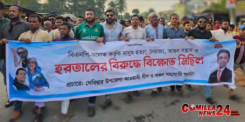 বিএনপি-জামায়াত কর্তৃক পুলিশ হত্যা, হরতাল ও নৈরাজ্যের প্রতিবাদে দেবিদ্বারে বিক্ষোভ