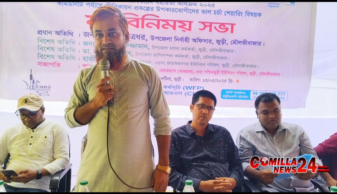 সাইফুল ইসলাম সুমন, জুড়ী থেকে। মৌলভীবাজার জেলার জুড়ী উপজেলায় জরুরী জীবিকায়ন সহায়তা কার্যক্রমের আওতায় “কমিউনিটি পর্যায়ে জীবিকায়ন প্রকল্পের উপকারভোগীদের নিয়ে মতবিনিময় সভা অনুষ্ঠিত হয়েছে। সেন্টার