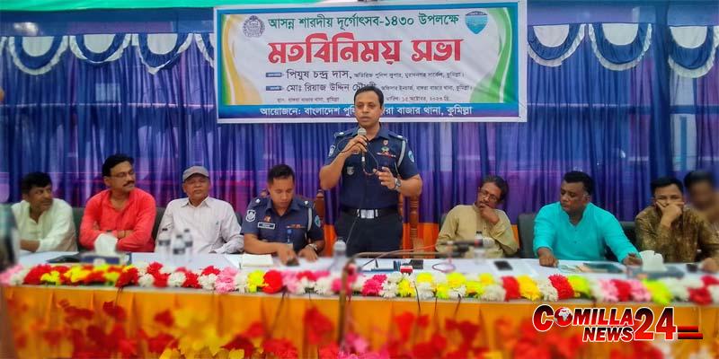মুরাদনগর, কুমিল্লা প্রতিনিধি।। বাংগরা বাজার থানা পূজা উদযাপন কমিটির নেতৃবৃন্দের সাথে পুলিশের মতবিনিময় সভা অনুষ্ঠিত হয়েছে। রবিবার (১৫অক্টোবর) দুপুরে শান্তিপূর্ণভাবে শারদীয় দুর্গোৎসব পালনের লক্ষ্যে কুমিল্লা
