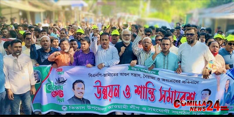 দেবিদ্বার, কুমিল্লা প্রতিনিধি।। বিএনপি-জামায়াতের ডাকা অবরোধের শেষ দিনে নৈরাজ ঠেকাতে কুমিল্লার দেবিদ্বারে সহস্রাধিক নেতাকর্মী নিয়ে রাজপথে মহড়া দিয়েছেন কুমিল্লা উত্তর জেলা আওয়ামী লীগের সাধারণ সম্পাদক