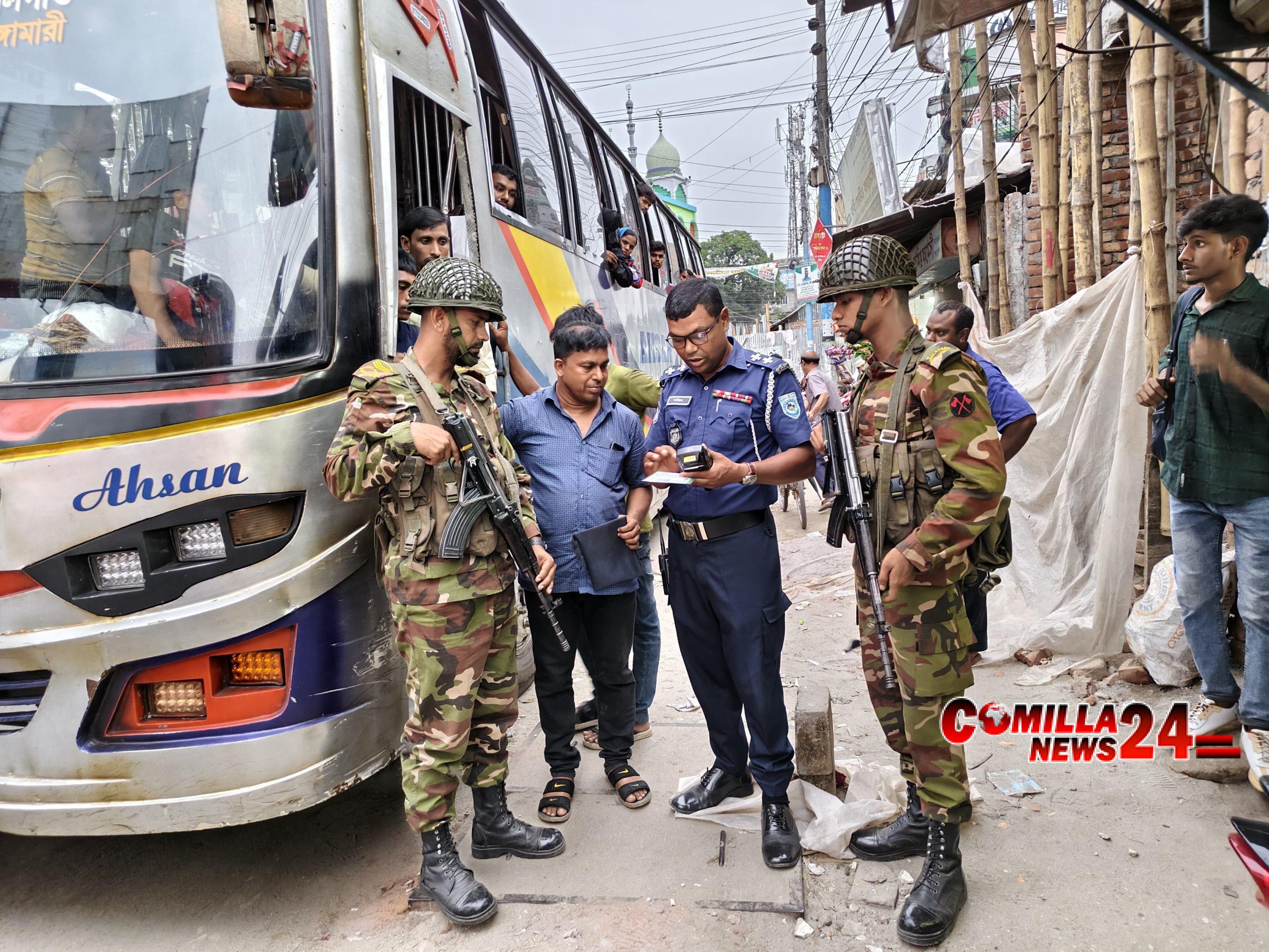 কুড়িগ্রামে বাসে অতিরিক্ত ভারা আদায়এ সেনাবাহিনীর অভিযানে জরিমানা