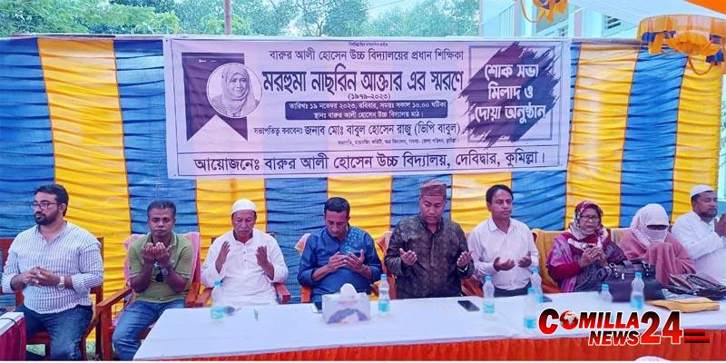 দেবিদ্বার প্রতিনিধি।। দেবিদ্বার উপজেলার বারুর আলী হোসেন উচ্চ বিদ্যালয়ের প্রয়াত প্রধান শিক্ষিকা নাছরিন আক্তার এর স্মরণে শোকসভা ও দোয়া অনুষ্ঠান রবিবার দুপুরে বিদ্যালয় মাঠে অনুষ্ঠিত