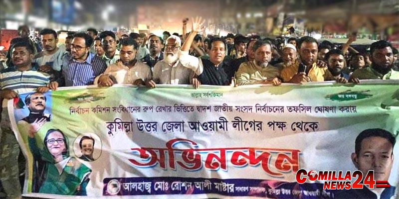 দেবিদ্বার প্রতিনিধি।। দ্বাদশ জাতীয় সংসদ নির্বাচনের তফসিল ঘোষনা’কে স্বাগত জানিয়ে দেবিদ্বারে আনন্দ মিছিল করেছে উপজেলা আওয়ামী লীগ, ও অঙ্গসহযোগী সংগঠন। বুধবার রাত ৮টায় উপজেলা আওয়ামী