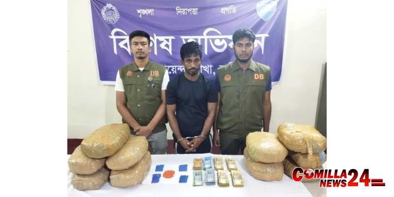 কুমিল্লায় বিশ কেজি গাঁজা, সাতশত পিস ইয়াবা ও মাদক বিক্রির নগদ ১,০৭,৪৫০/- টাকাসহ ১জনকে গ্রেফতার করেছে জেলা পুলিশের গোয়েন্দা শাখা।